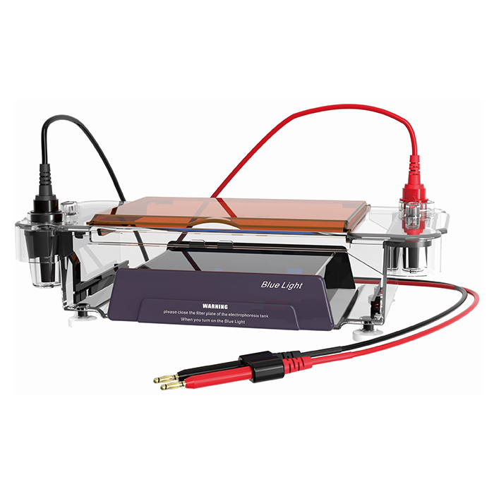 A vízszintes elektroforézis cellák elektromos mezővel hajtják végre a gélben lévő töltött molekulák migrációját, és az elektromos mezőben a molekulák különböző migrációs sebességét kihasználva választják szét őket. A gélt az elektroforézis tartályba helyezik, és a mintát a mintatartályon keresztül töltik a gélbe. Az áramforráshoz csatlakoztatott elektródák elektromos mezőt generálnak, amely a molekulák méretének, töltésének vagy morfológiájának különbségei alapján választja szét a mintában lévő molekulákat. Ezen folyamat során az elektroforézis folyamatát kék fény besugárzásával figyelik meg az elektroforézis tartályban, hogy valós időben követhessék a minta szétválasztását. Az elektroforézis előrehaladtával a minták fokozatosan szétválnak és sávokat képeznek. A berendezés valós idejű kék fényű megfigyelő eszköze segíti a kísérletezőt az elektroforézis sávok állapotának bármikor történő ellenőrzésében, hogy biztosítsa a kísérlet zökkenőmentes lefolyását. Ugyanakkor a felnyitható fedél kialakítása és az automatikus kikapcsolási funkció biztosítja a kísérletet végző személyzet biztonságát.